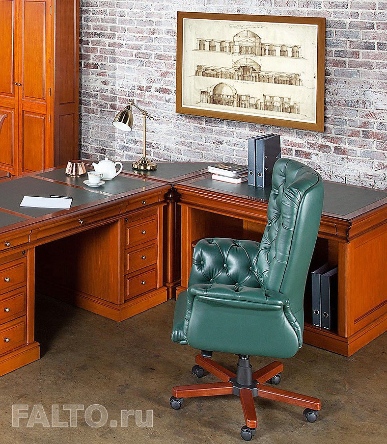 Варианты цвета спинки и сидения: зелёная кожа, коричневая кожа.