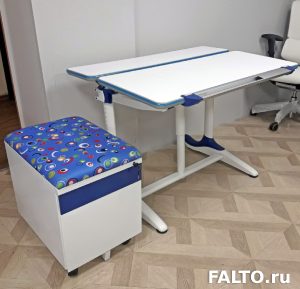 Стол-парта с регулируемой высотой столешницы. - Тумбочка-табуретка для рабочего места ребенка (синий/бел)