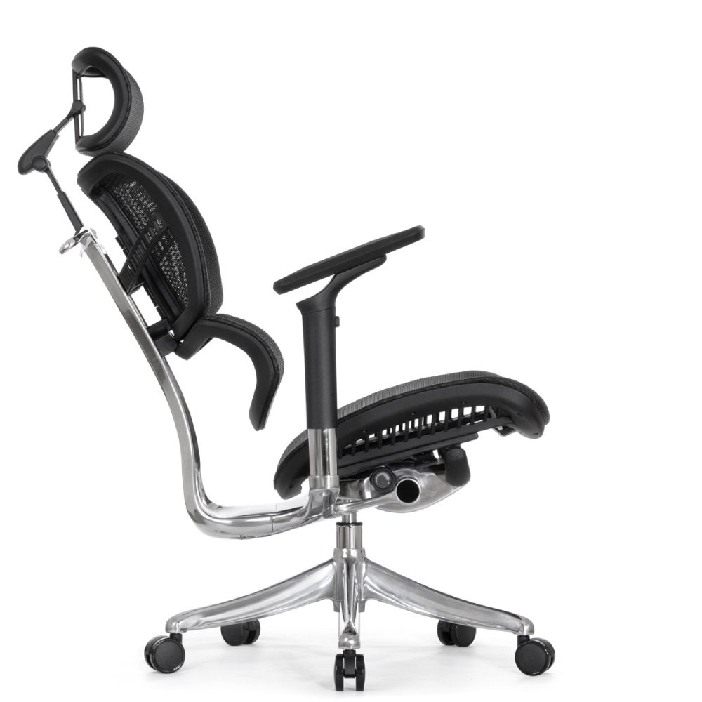 Офисное кресло с выдвигаемой подножкой, утонченным дизайном и системой индивидуальных настроек. Второе поколение: 6D подлокотники, увеличенное сиденье анатомической формы с активным скатом в задней части и скосом в передней части, высокотехнологичный каркас, модернизированный механизм.