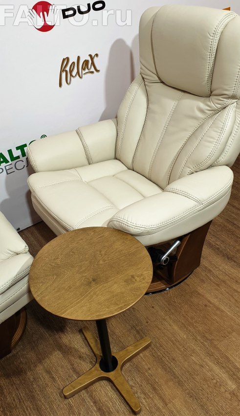Съемный круглый столик-подставкаПрочный круглый столик-подставка крепится к подлокотнику кресел Релакс. Положение столика регулируется.