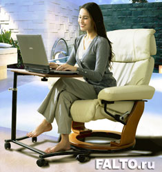 Компьютерный столик FaltoНебольшой компьютерный столик с настраиваемой высотой и углом наклона для комфортно работы в креслах-реклайнерах серии Falto.