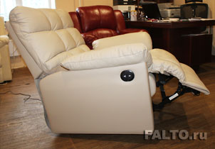 Кресло реклайнер Stress-Free способно менять свою конструкцию. Например, при необходимости можно вытянуть вперед ножную часть кресла, и положить на него ноги. Спинка также отгибается на несколько градусов назад. В таком положении в кресле Stress-Free 16 можно даже вздремнуть.