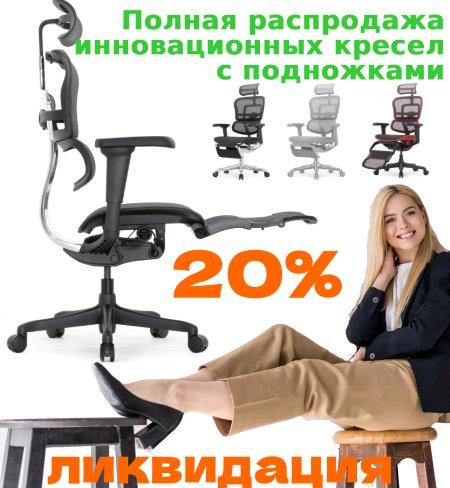 Мы объявляем полную распродажу инновационных кресел с подножками. Это отличная возможность приобрести кресло, в котором одинаково удобно работать, отдыхать и восстанавливаться после насыщенного дня.