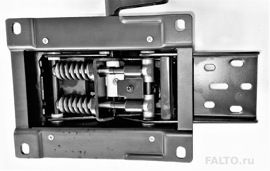 Металлический каркас с элементами пластика. Стальные пружины обеспечивают надёжность работы механизма Т-90 и плавное движение спинки кресла. Две стальные пружины способствует увеличению срока службы изделия. Ручка регулировки высоты (активация газлифта нажатием вниз) удлинена для удобства доступа. Включение движения спинки кресла — выдвижение ручки управления наружу. Фиксация отклонённого положения или фиксация вертикального положения — движение ручки управления внутрь. Отверстие для газлифта стандартное. Удобство кресла во многом зависит от качества механизма качания. Современный универсальный мультиблок Т-90 обладает высокой надёжностью, протестирован по стандарту BIFMA, оптимальный вес пользователя до 120 кг. Мультиблок для кресла не требует ежегодного обслуживания и регулярной смазки.